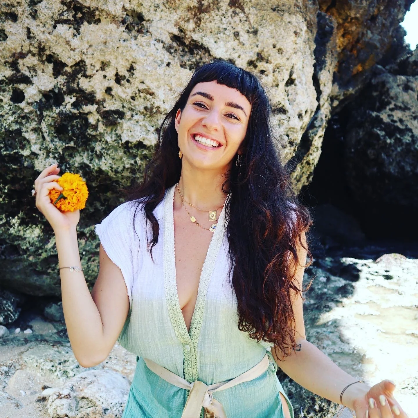 Simona in our ‘BLISS’ Plant Dye Cotton Kaftan in Ocean