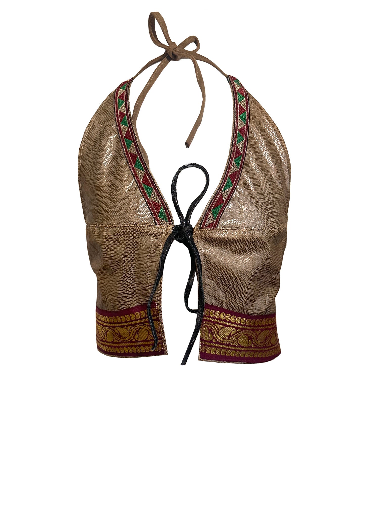 These beautiful leather and suede crop tops are an exclusive range from our 'India Chronicles' collection.