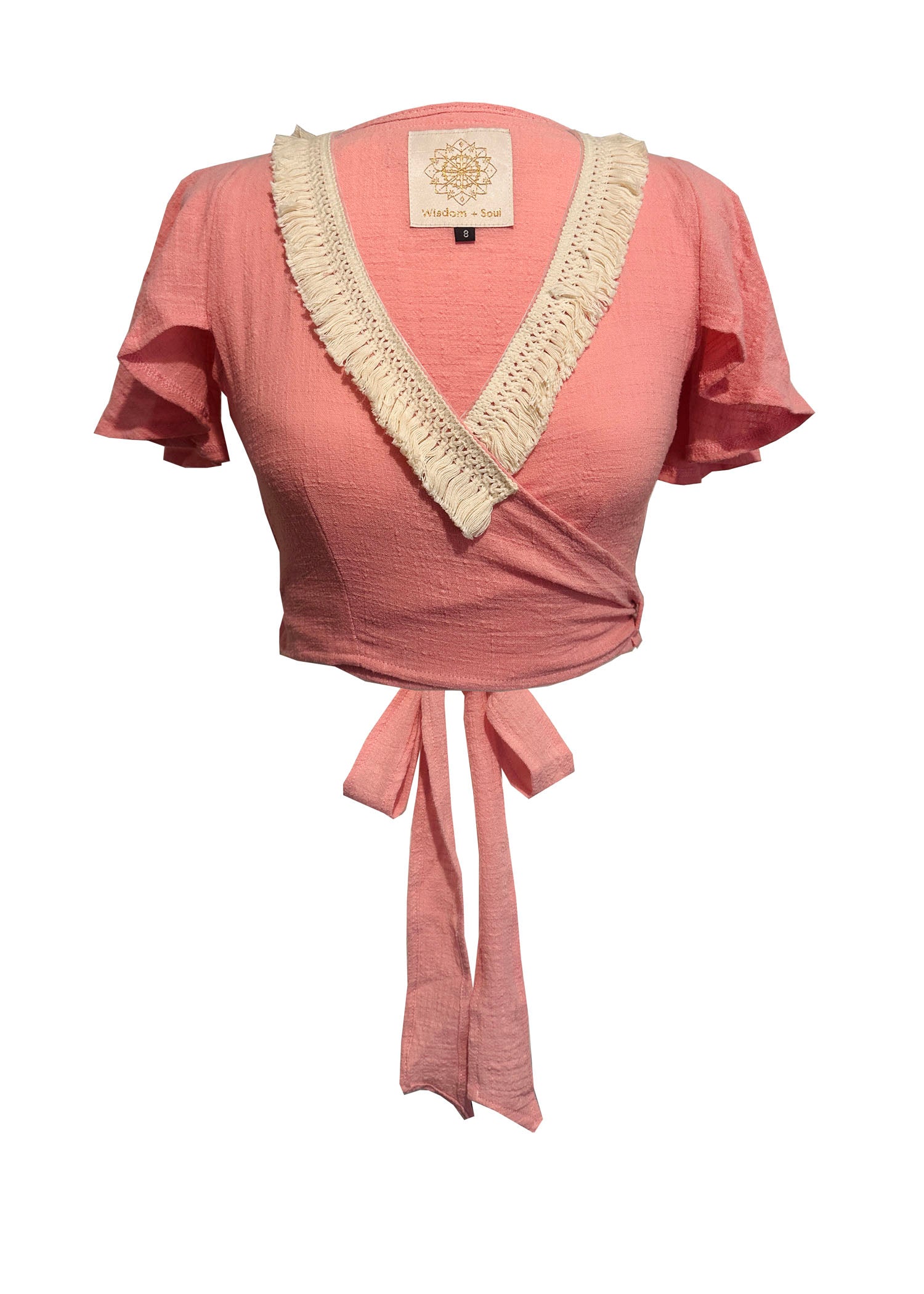 Stunning 'Luna’ loose weave cheesecloth cotton wrap around top in lotus pink.