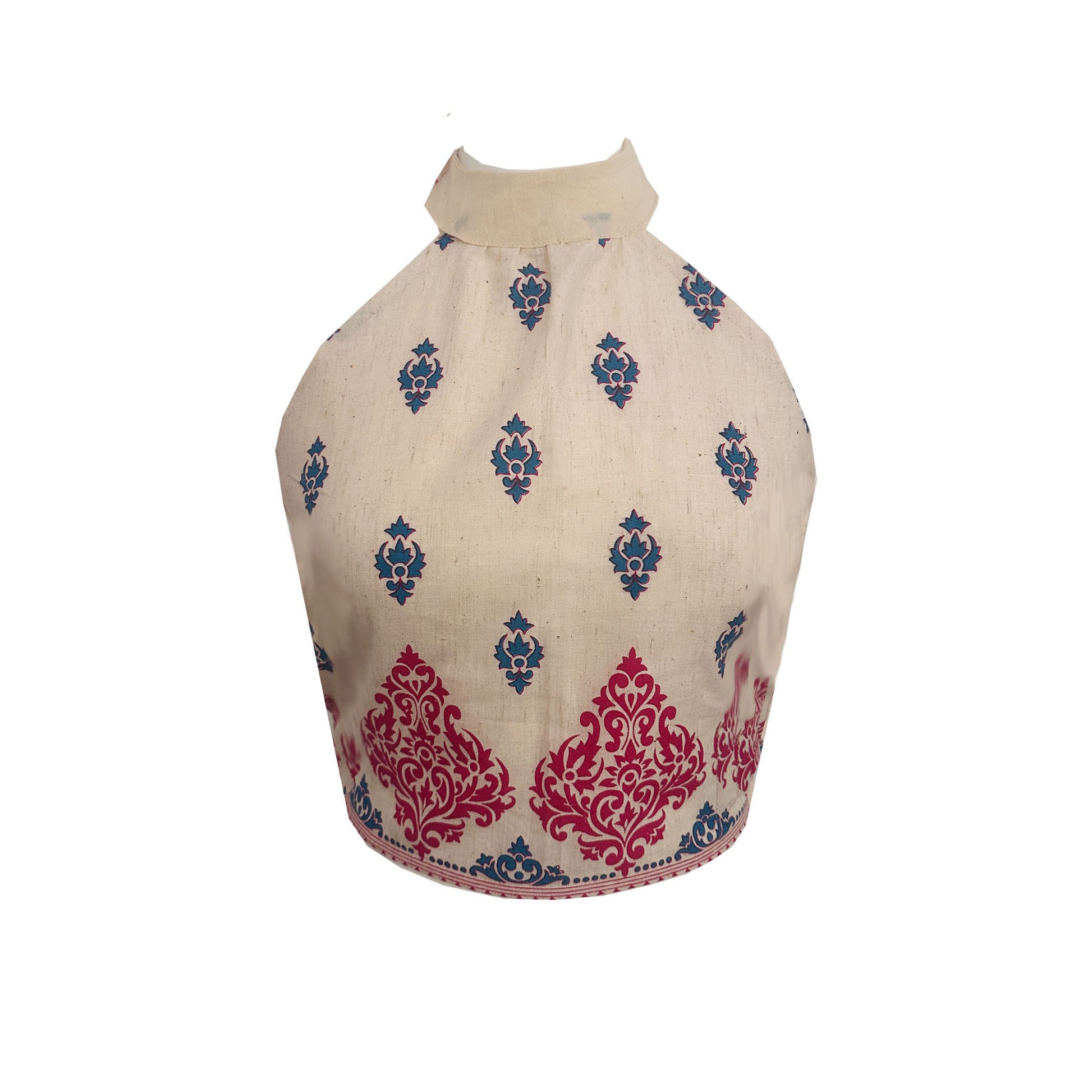 This beautiful raw calico cotton fabric was found in the markets of Goa many moons ago - with a beautiful ornate print in hot pink and blue, this truly is a stunning piece!