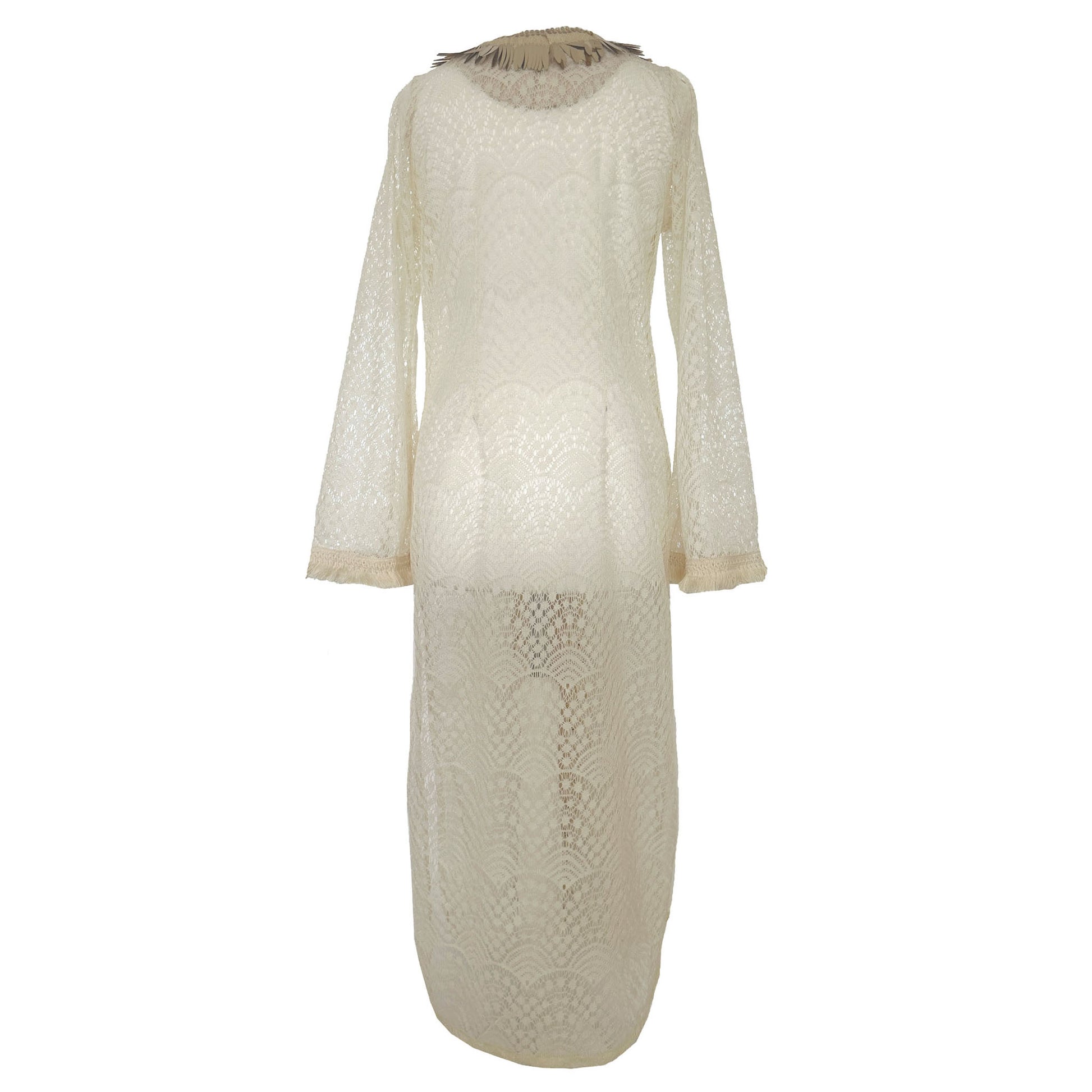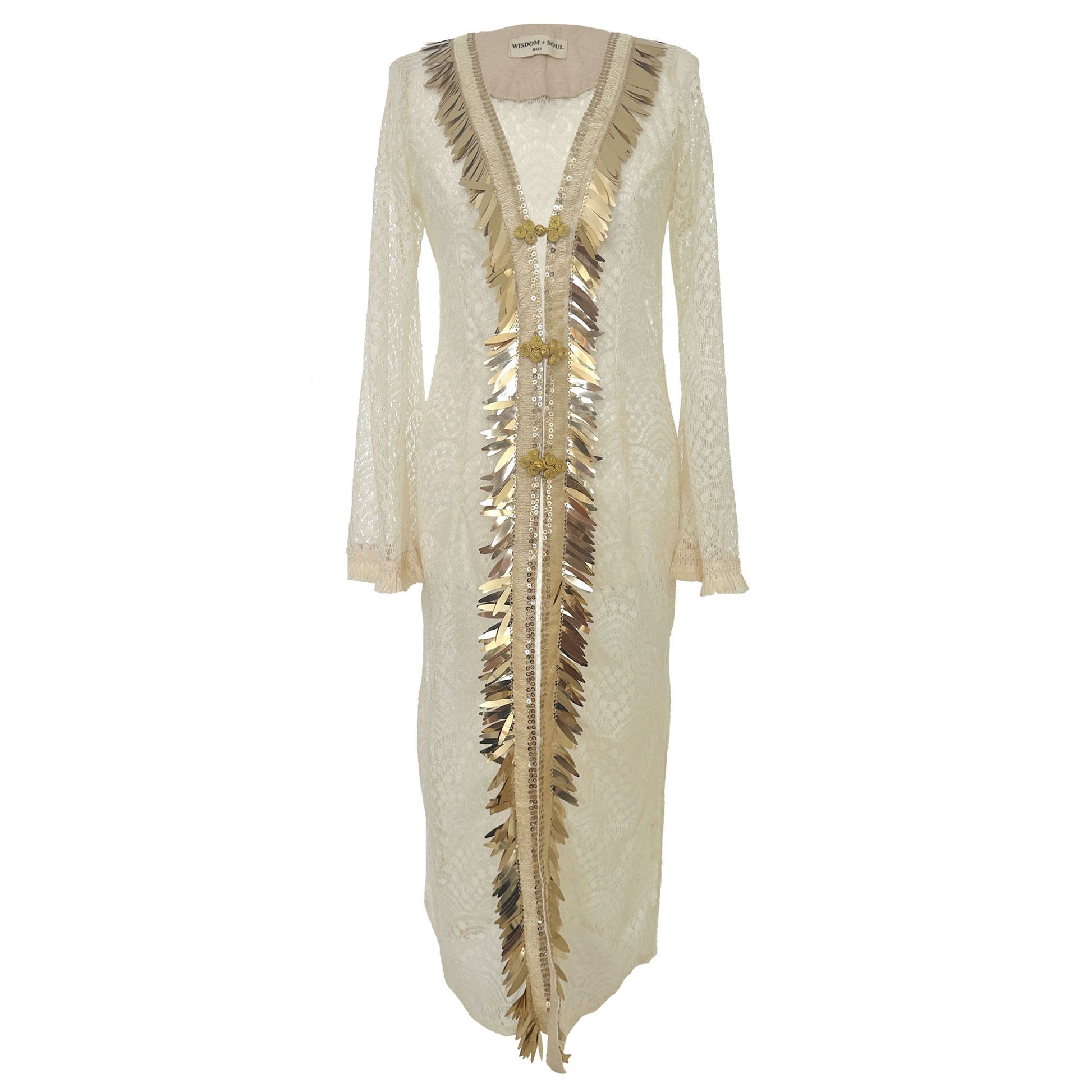 Beautiful Long Lace Kaftan with Glittering Golden Metallic Plume